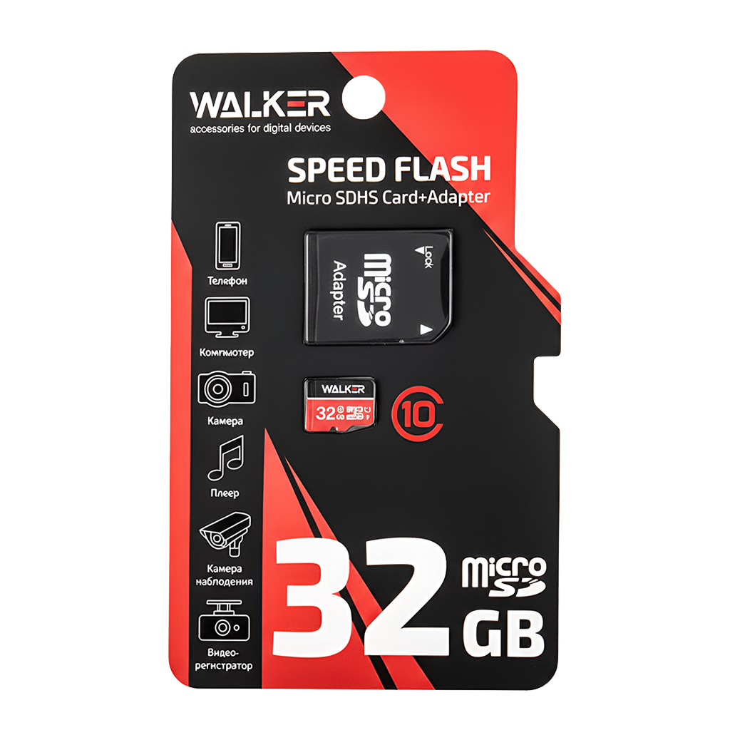 Карта памяти microSD 32GB Class 10 UHS-I с адаптером Walker
