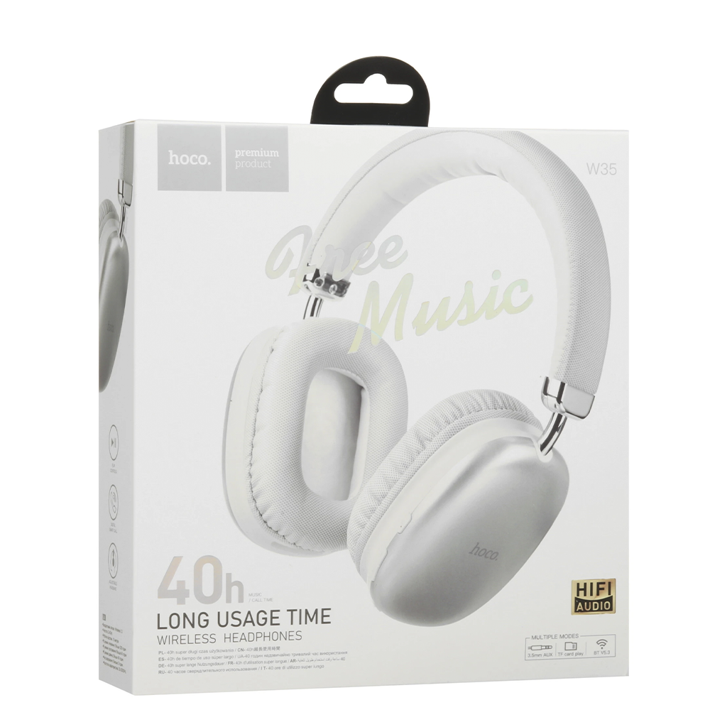 Наушники беспроводные полноразмерные HOCO W35 серебро
