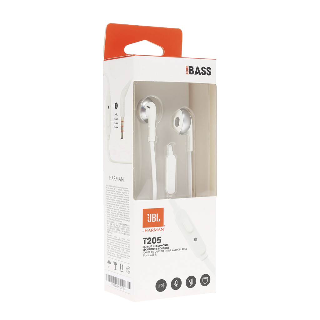 Наушники проводные 3,5мм JBL T205 серебро