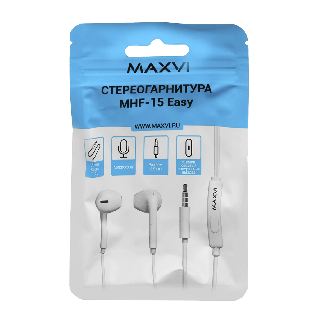 Наушники проводные 3.5мм Maxvi MHF-15 Easy белые