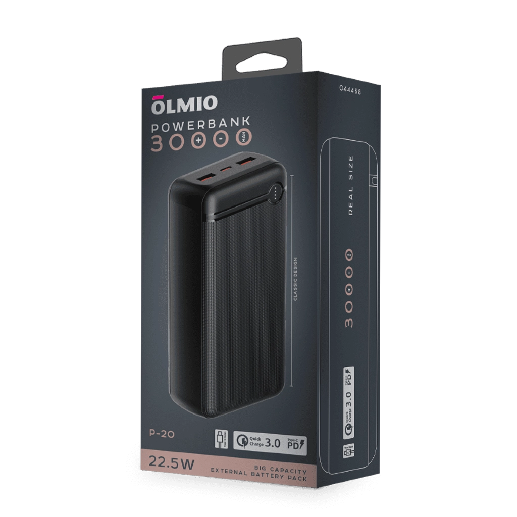 Портативное ЗУ QС3.0+PD 30 000 мАч Olmio P-30 черное